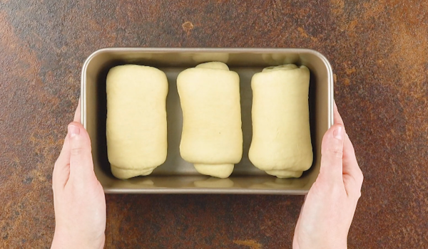 - Les rouleaux doivent avoir la même épaisseur dans le plat. Recouvrez le tout de film alimentaire et laissez à nouveau lever pendant 1 heure.
