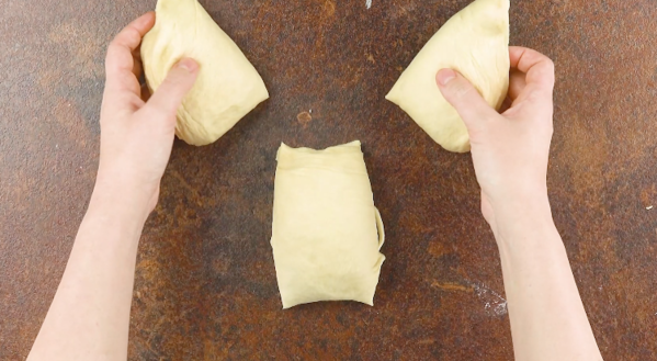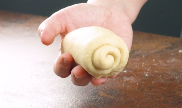 - Étalez chaque morceau de pâte que vous repliez en deux. Ensuite étalez à nouveau et formez des rouleaux.