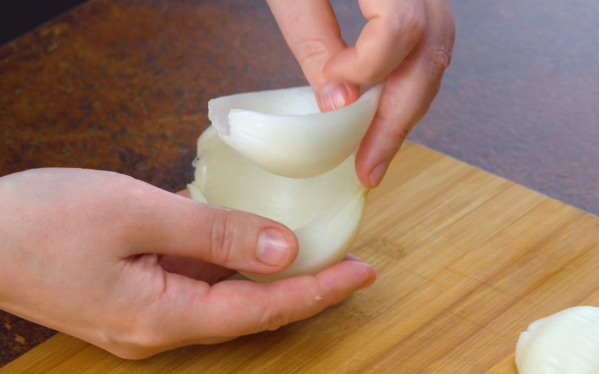 - Pelez le gros oignon et coupez-le en deux. Séparez les différentes couches d'oignons les unes des autres.