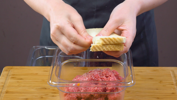 - Mettez tout dans un saladier et ajoutez un œuf, la mie des tranches de pain de mie (la meilleure façon est de faire tremper le pain dans de l'eau sans croûte, d'essorer l'eau et d'ajouter ensuite le pain de mie à la viande hachée), 1 cuillère à soupe de harissa, du sel et du poivre et mélangez le tout.