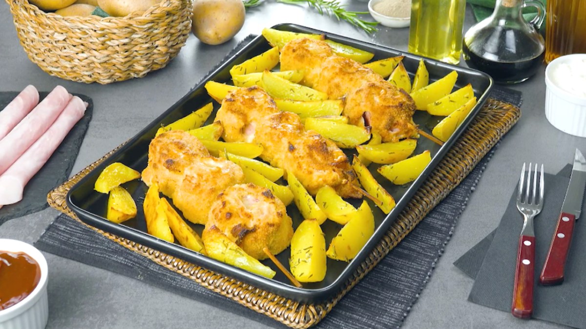 Le cordon bleu est une spécialité aussi simple que délicieuse que l’on peut déguster toute l’année ! Voici une petite variante estivale qui va vous mettre l’eau à la bouche : des brochettes de cordon bleu accompagnées de pommes de terre façon potatoes. Le plus ? Tout est cuit au four ! Suivez le guide :