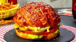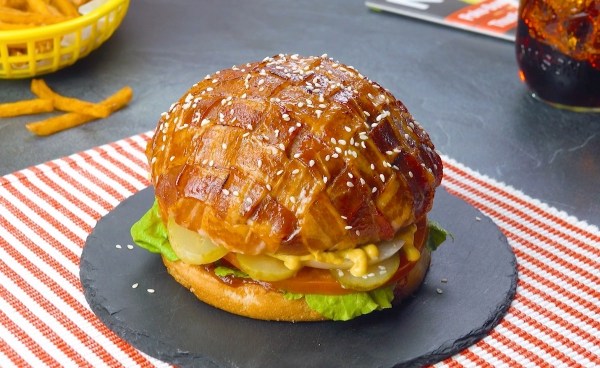 Au premier coup d’œil, ce burger semble tout à fait normal, mais il n’en est rien ! C’est en mordant dedans ou en le coupant que l’on découvre le secret juteux de sa moitié supérieure, composée de chou-fleur, de viande hachée et de bacon. Bon Ap’ !