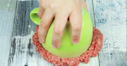 - Prenez maintenant une tasse à expresso ou un coquetier par exemple pour faire un trou au milieu de votre steak haché.
