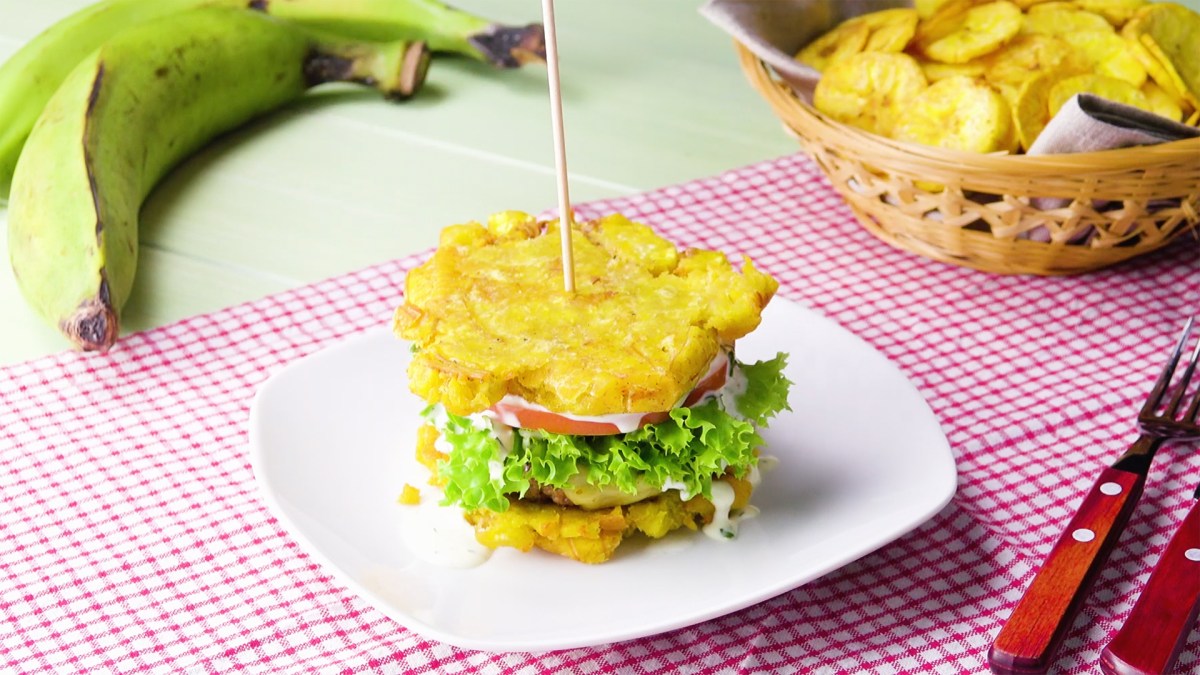 - Placez un pain de banane sur le plan de travail, déposez la viande sur le dessus puis une feuille de salade et une tranche de tomate. Utilisez de la sauce aux herbes pour assaisonner. Enfin, déposez un deuxième petit pain à la banane sur le dessus.