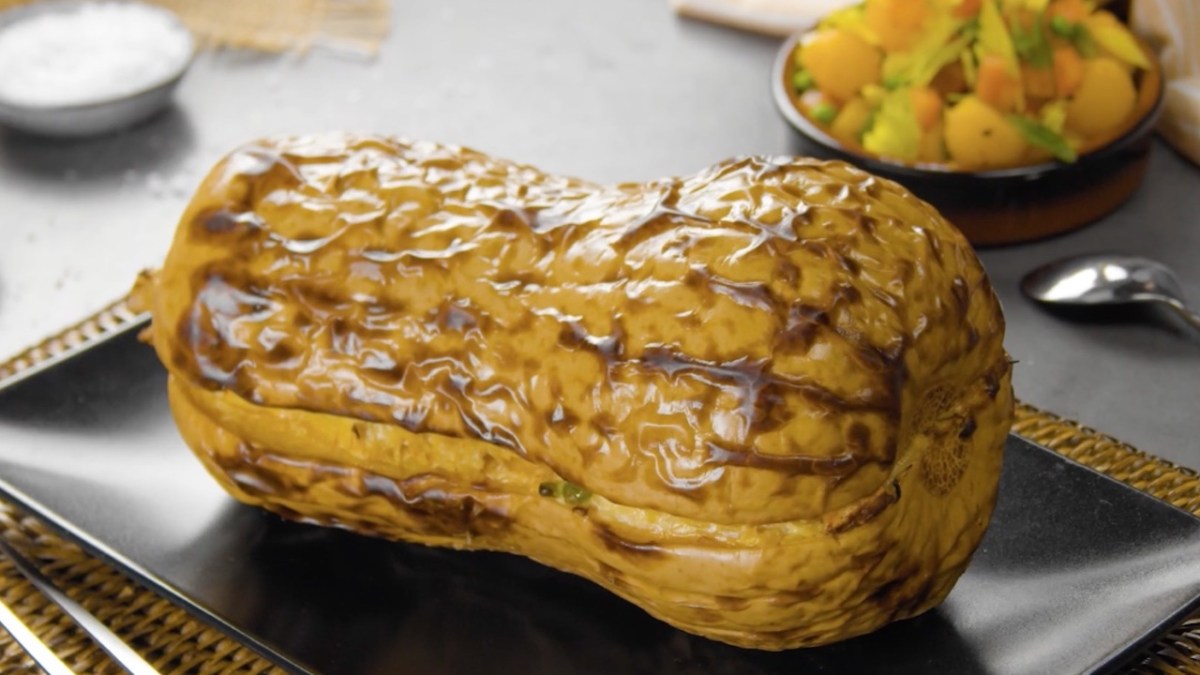 Des petits pains moelleux à la courge aux délicieuses pizzas à base de butternut, les recettes à base de courge butternut sont très appréciées lorsqu’il s’agit de préparer des plats originaux et savoureux. Ce n’est pas étonnant, car cette variété de courge brille par son goût de noix légèrement sucré. C’est également le cas dans l’interprétation d’aujourd’hui : une courge butternut farcie, à laquelle un savoureux mélange de pain de mie, de céleri farci au fromage et de viande hachée épicée confère un arôme unique.