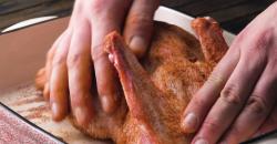 - Mettez le canard dans une rôtissoire et massez-le avec un mélange d'épices (sel, paprika, cumin et poivre). Mettez les branches de thym et de persil à l'intérieur puis versez ensuite le bouillon de légumes. Enfournez à 160 °C pendant 1 heure 30.