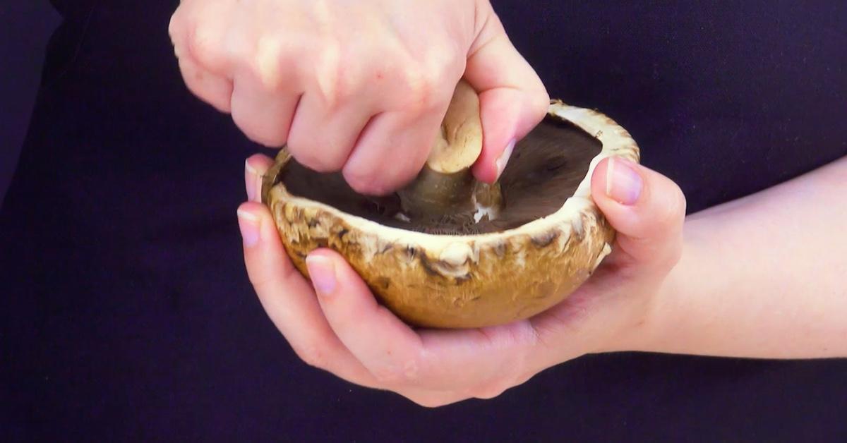 - Préchauffez le four à 180°C. Retirez les pieds et les lamelles des champignons à l'aide d'une cuillère. Étalez ensuite l'huile d'olive à l'intérieur et à l'extérieur du champignon.