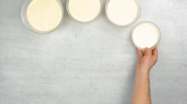 - Divisez la pâte à cheesecake en quatre saladiers comme suit : 700 g, 600 g, 500 g et 250 g.