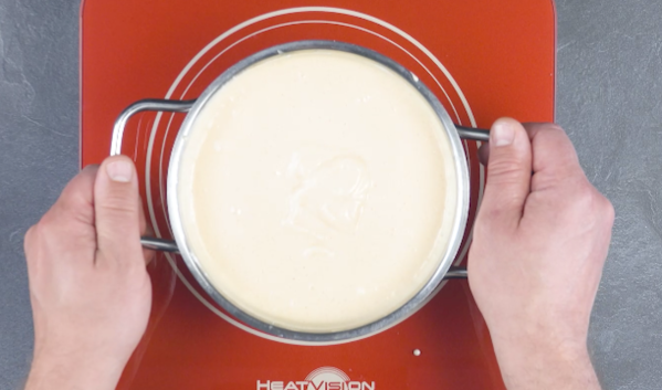 - Vous avez maintenant besoin d'une plaque de cuisson profonde. Remplissez-la d'eau et mettez le moule à gâteau dedans. Préchauffez le four à 120 °C, en mode convection, et faites cuire le gâteau pendant 20 minutes. Ensuite, montez la température à 150 °C et faites cuire le gâteau 15 minutes supplémentaires.