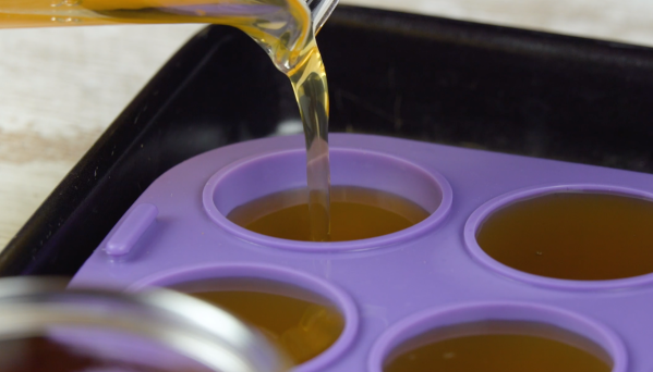 - Dissolvez le miel dans de l'eau tiède et ajoutez les feuilles de gélatine préalablement trempées. Mélangez le tout et versez la masse dans le moule en silicone. Gardez le moule au frais pendant au moins 2 heures (au mieux, au congélateur).