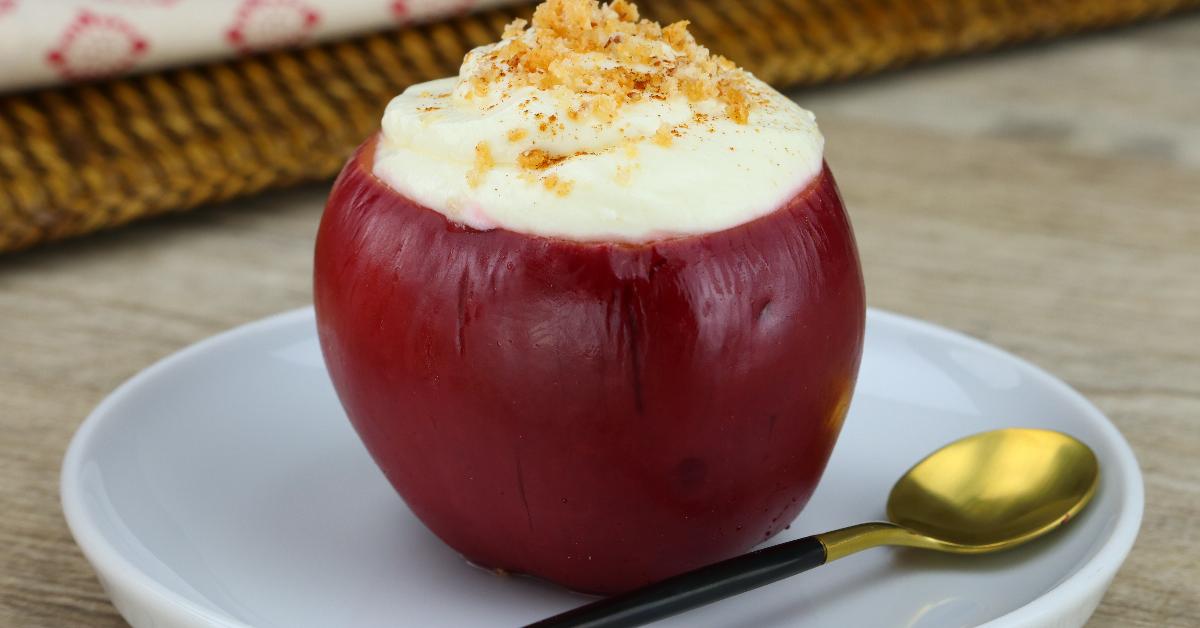 - Remplissez les pommes avec le mélange à base de fromage frais, saupoudrez le dessus de miettes de petits beurres et enfournez pendant 15 minutes.