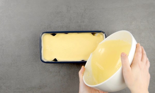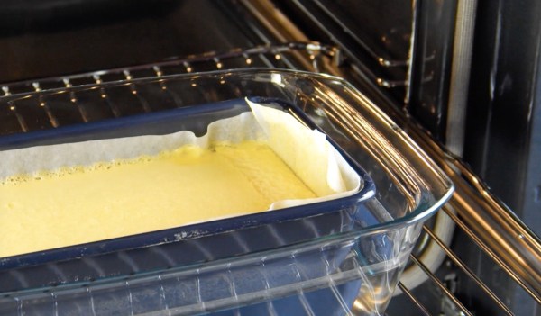 - Couvrez le moule à cake d'une feuille d'aluminium et placez-le dans un plat à gratin. Faites chauffer de l'eau et versez-la dans le plat à gratin de manière à ce que le moule à gâteau soit entouré de suffisamment d'eau. Enfournez le tout pendant 75 minutes à 160 °C. Retirez ensuite le moule à cake du plat à gratin, retirez la feuille d'aluminium et retirez le cheesecake du moule à l'aide du papier sulfurisé. Laissez le cheesecake refroidir pendant environ 2 heures.