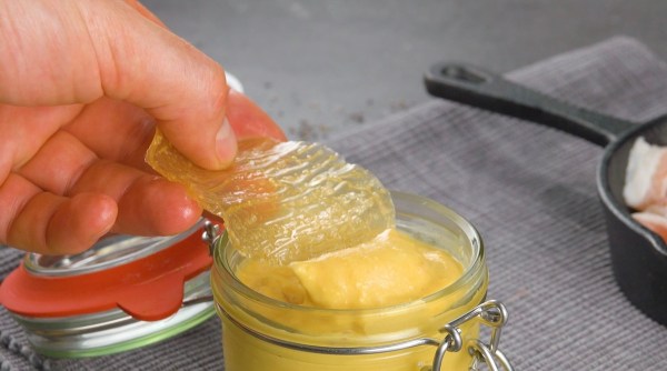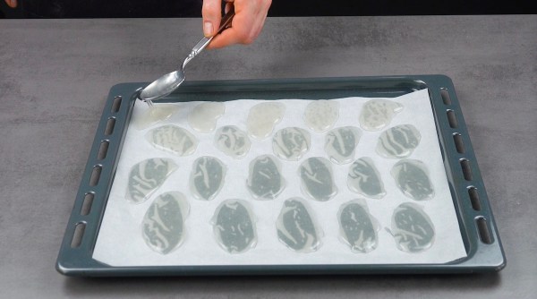 - A l'aide d'une cuillère, déposez la gélatine de pomme de terre sur une plaque à pâtisserie recouverte de papier sulfurisé et laissez les chips sécher au four pendant 4 à 6 heures à 50 °C.