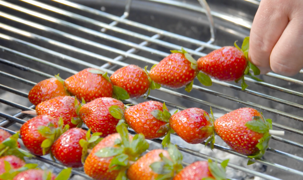 - Faites griller les brochettes de fraises pendant environ 2 minutes de chaque côté.