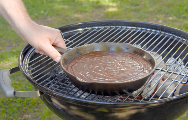 - Placez la poêle sur le gril pendant environ 45 minutes avec le couvercle fermé.