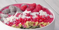 - Versez le smoothie dans un bol et décorez avec les aliments de déco.