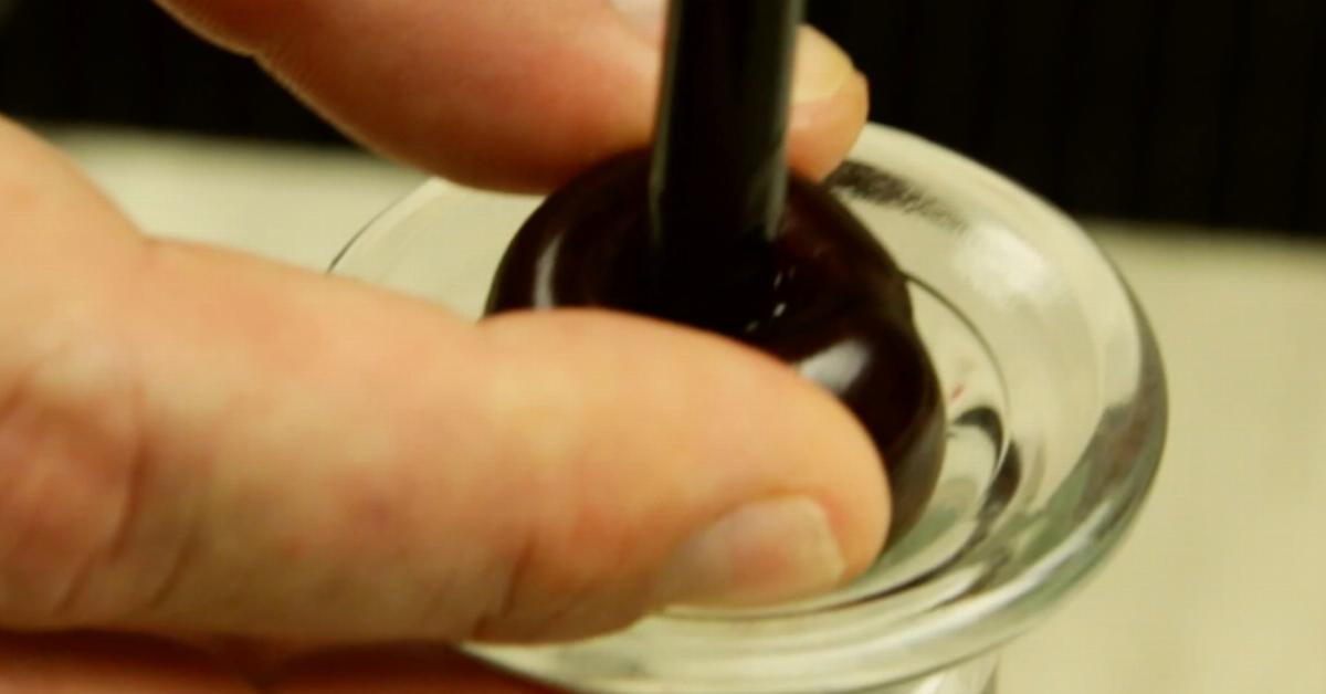 - Dénoyautez les cerises. Vous pouvez utiliser un dénoyauteur de cerise pour aller plus vite ou une baguette ou une paille pour pousser le noyau dehors. Faites-le au-dessus d’une assiette ou d’un verre pour récupérer les noyaux tombés.