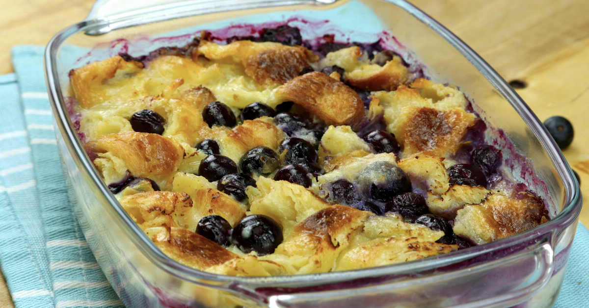 Le petit déjeuner se revisite : clafoutis aux croissants et myrtilles