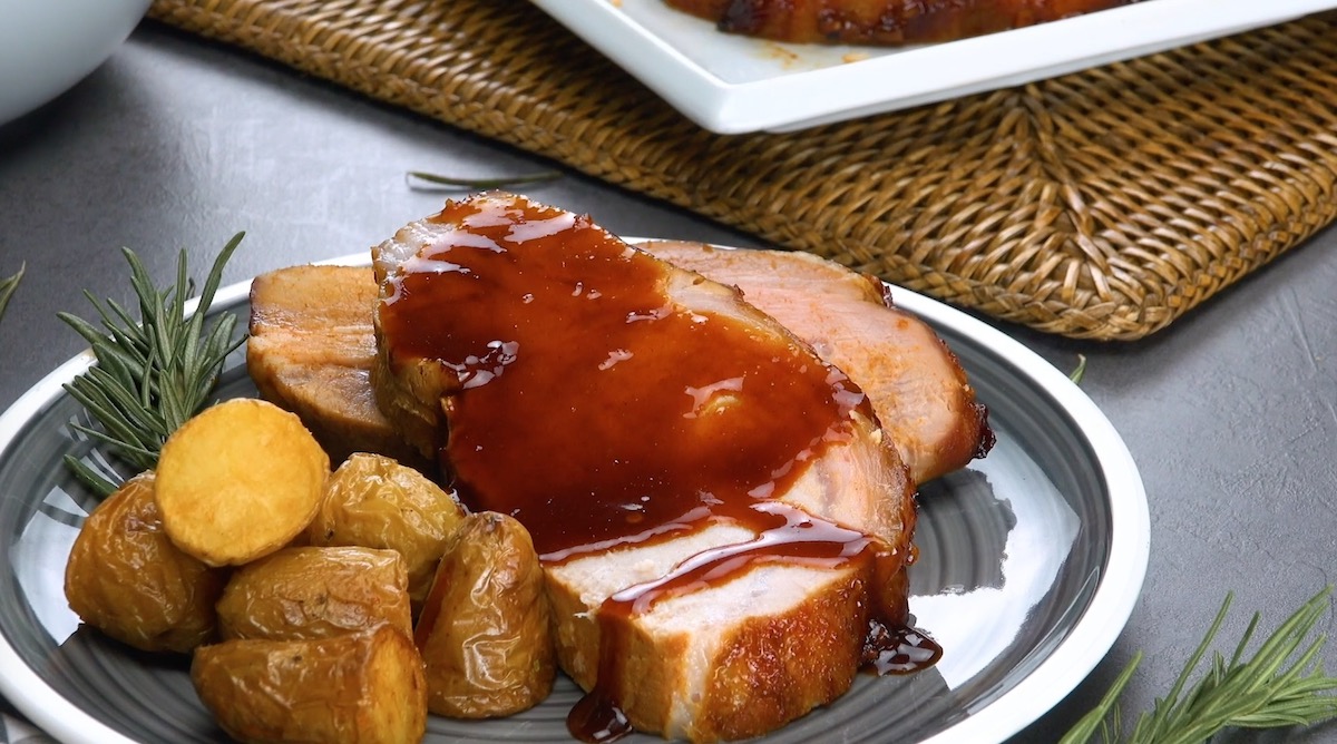 2. Longe de porc juteuse avec ses pommes de terre croustillantes