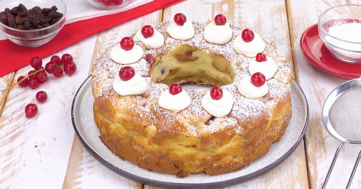 Pour la variante 1, étalez du fromage blanc sur les pains au lait puis étalez la confiture et terminez en saupoudrant de raisins secs. Déposez les derniers morceaux de pain au lait et enfournez le tout à 160 °C pendant 35 minutes. Avant de servir, saupoudrez de sucre glace et faites des petits tas de crème fouettée.
