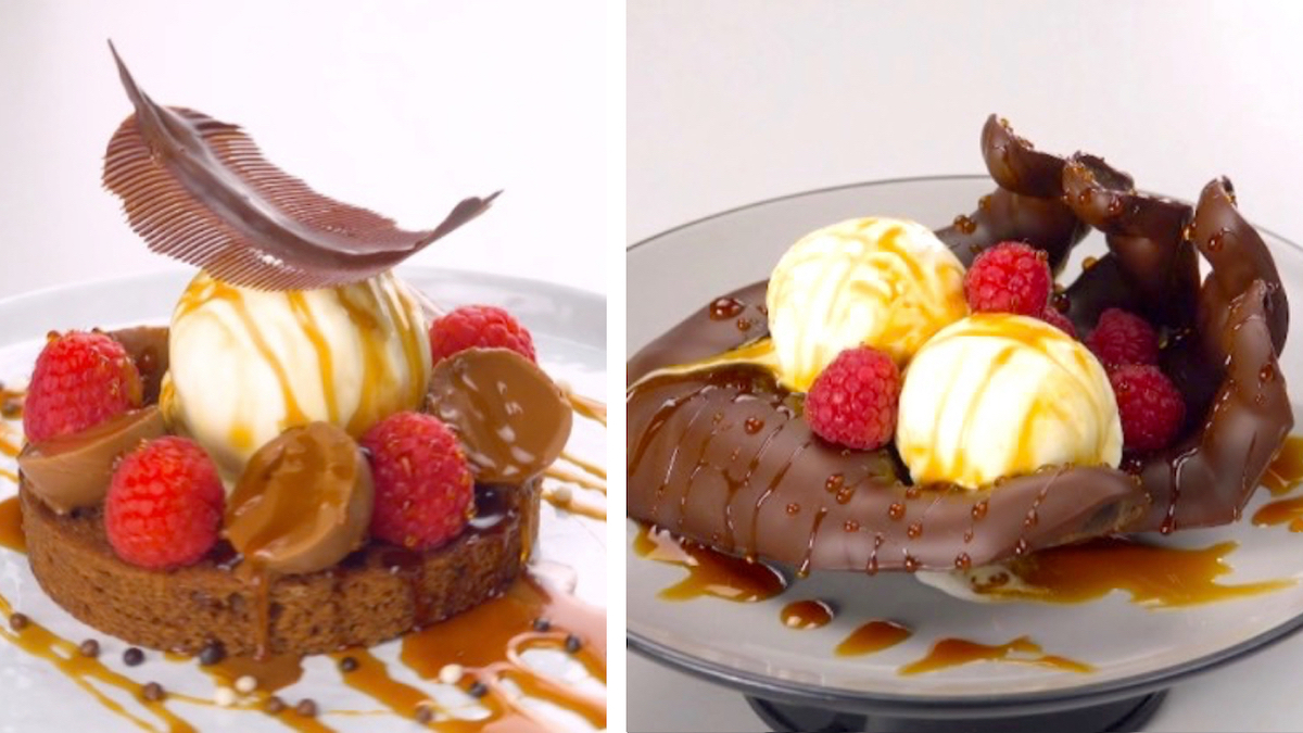 Vous êtes-vous toujours demandé.e quelles astuces les chefs étoilés et les pâtissiers utilisent pour décorer leurs desserts de façon aussi merveilleuse ? Eh bien, à partir d’aujourd’hui, vous aurez vos réponses, parce que nous allons vous montrer comment manier le chocolat et le caramel comme les pros.