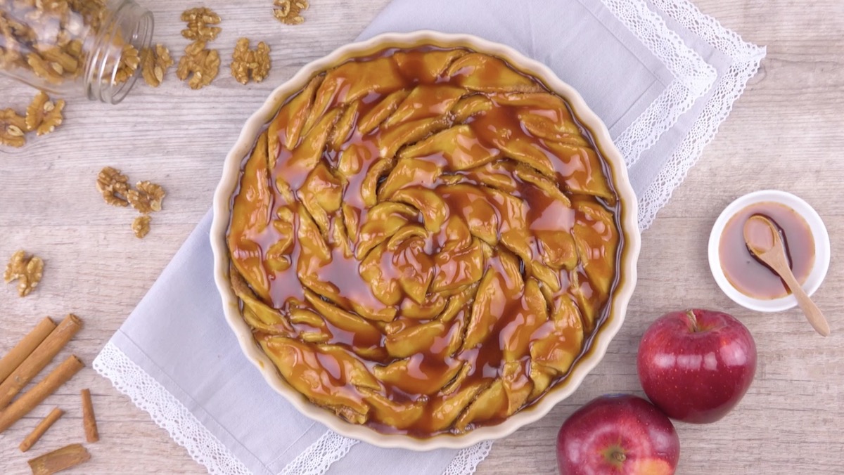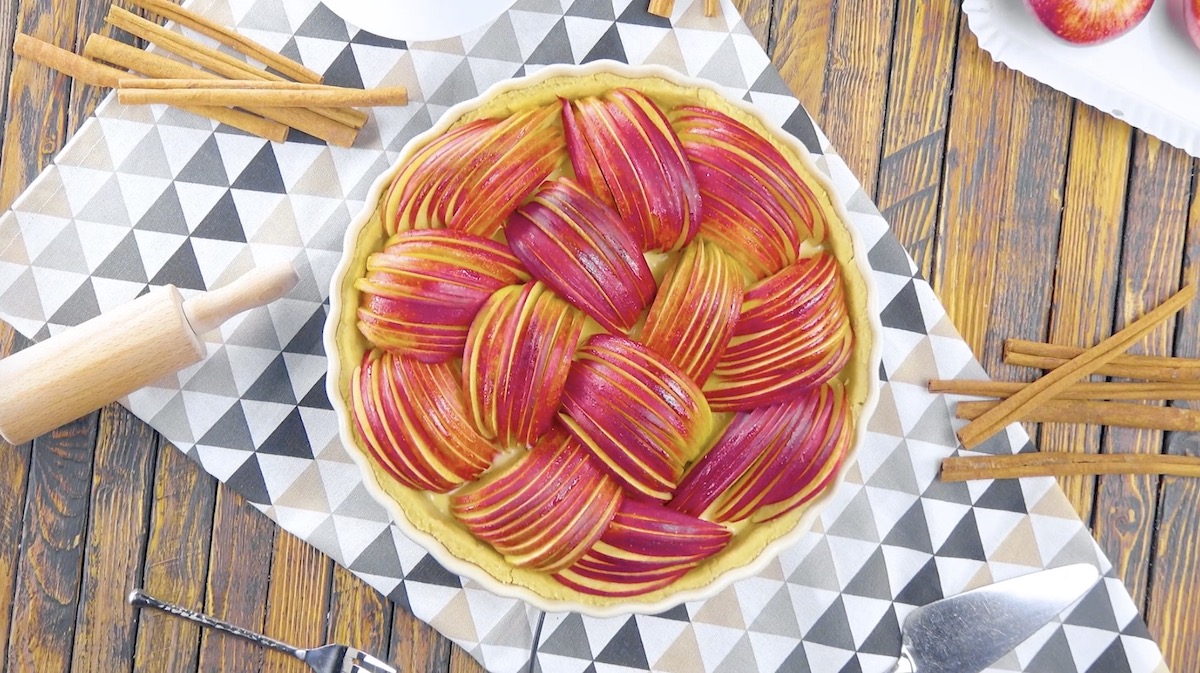 Les pommes sont très populaires, non seulement parce qu’elles sont délicieuses et parfaites pour le goûter, mais également de par leur polyvalence : on peut les consommer en compote, en desserts chauds ou glacés, et même cuites au four. Cette recette originale de tarte aux pommes est un véritable délice, tant par son aspect que par son goût. Un must dont vous ne pourrez plus vous passer !
