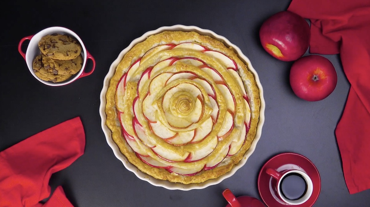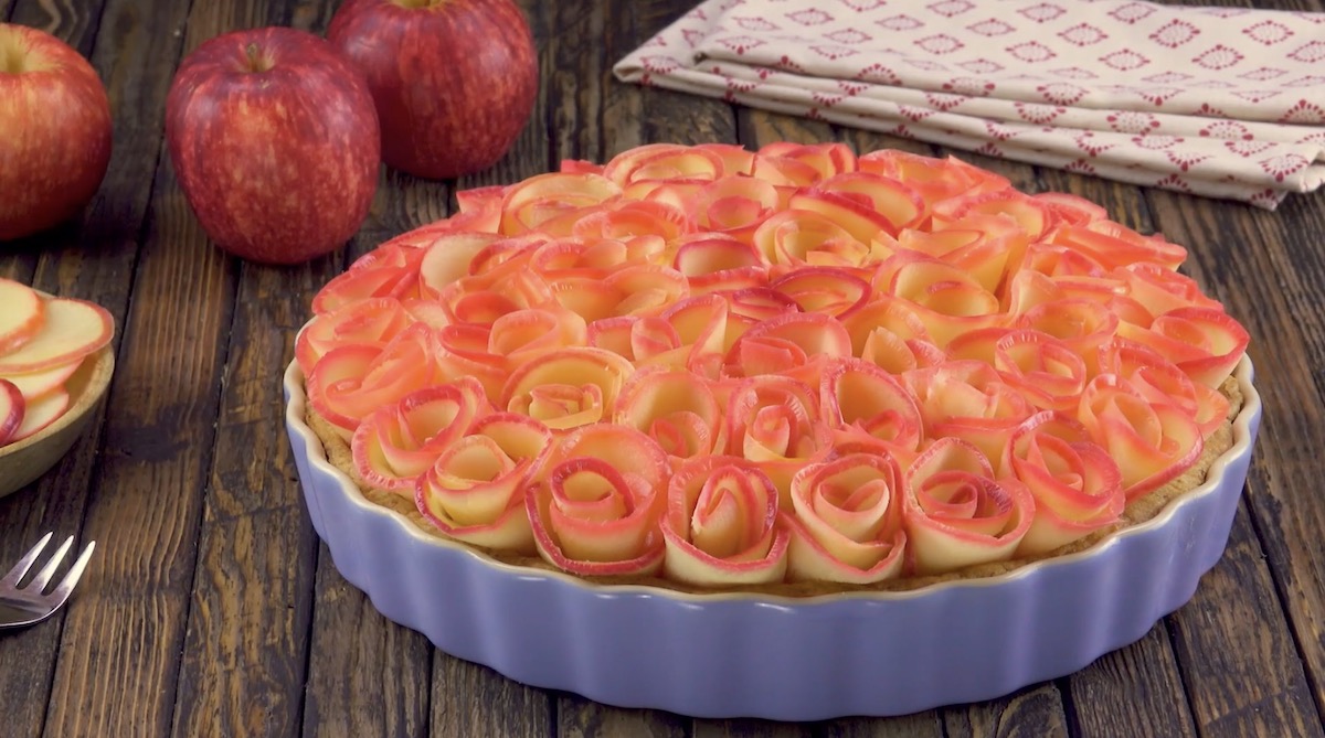 Le goût ne fait pas tout dans un gâteau. L’apparence du dessert est aussi un point essentiel lorsqu’on veut en mettre plein la vue. Avec cette tarte façon bouquet de pommes, vous êtes sûr de marquer des points auprès de vos invités.