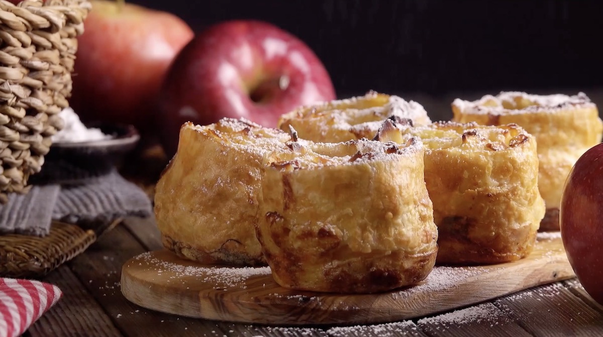 La spécialité des pays germaniques s’invite à votre table avec cette délicieuse recette de strudel aux pommes. Un moule à muffins, des pommes et de la crème pour un rouleau de plaisir !