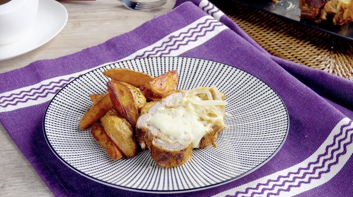 Lorsqu’on reçoit des invités, on a souvent tendance à vouloir préparer des recettes qui demandent un peu de patience, mais qui sont un vrai régal pour le palais – et dont le résultat est exceptionnel. Ce délicieux rôti de porc aux oignons, fromage et pommes de terre fait partie de ces plats festifs parfaits pour les fêtes pour les grandes occasions.