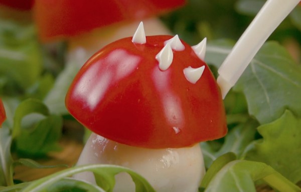 3) Pour la touche finale, vous pouvez déposer les champignons sur un lit de roquette. - 1) Coupez d'abord le dessus d'une tomate, puis retirez-en la chair à l'aide d'une cuillère à café.
