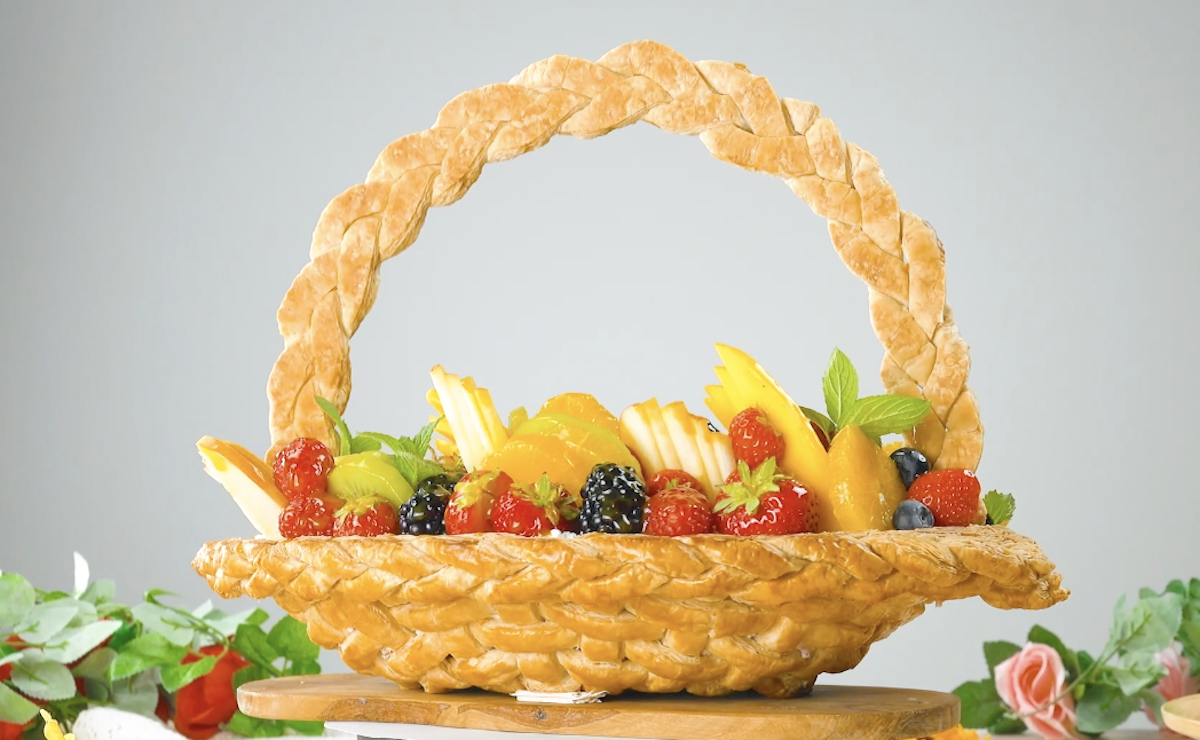 1. Panier de fruit comestible en pâte feuilletée avec crème au mascarpone
