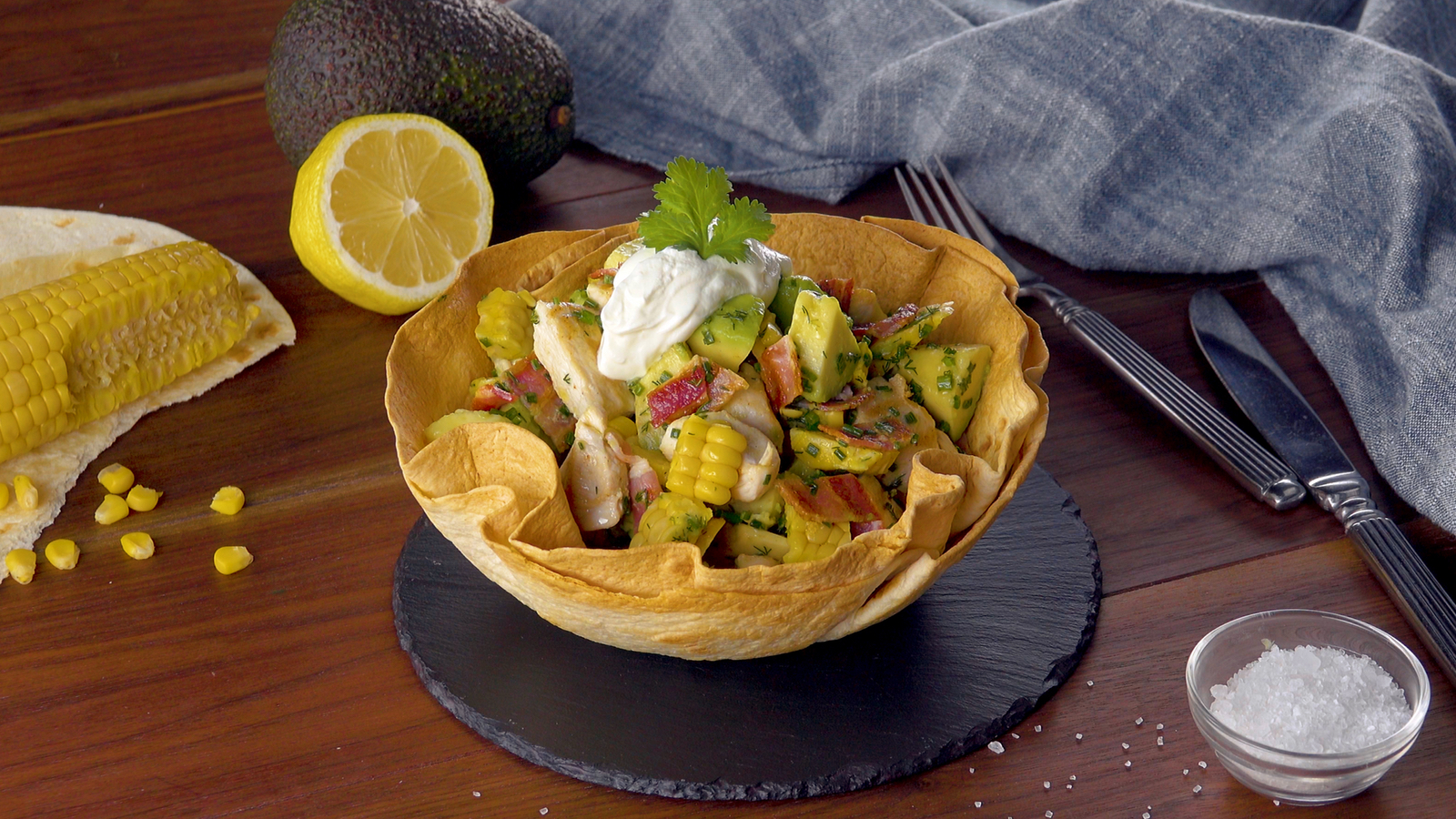 10) Salade au poulet et à l’avocat dans son bol en tortillas