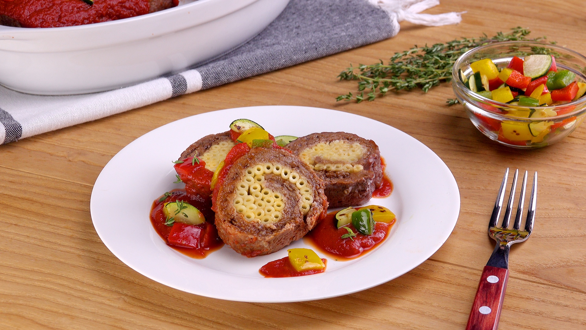 Les pâtes font partie de ces aliments que l’on peut décliner à toutes les sauces et manger avec tout. Dans cette recette, on ne les sert pas dans un coin de l’assiette, mais directement dans la viande pour former un rouleau protéiné parfait pour le déjeuner.