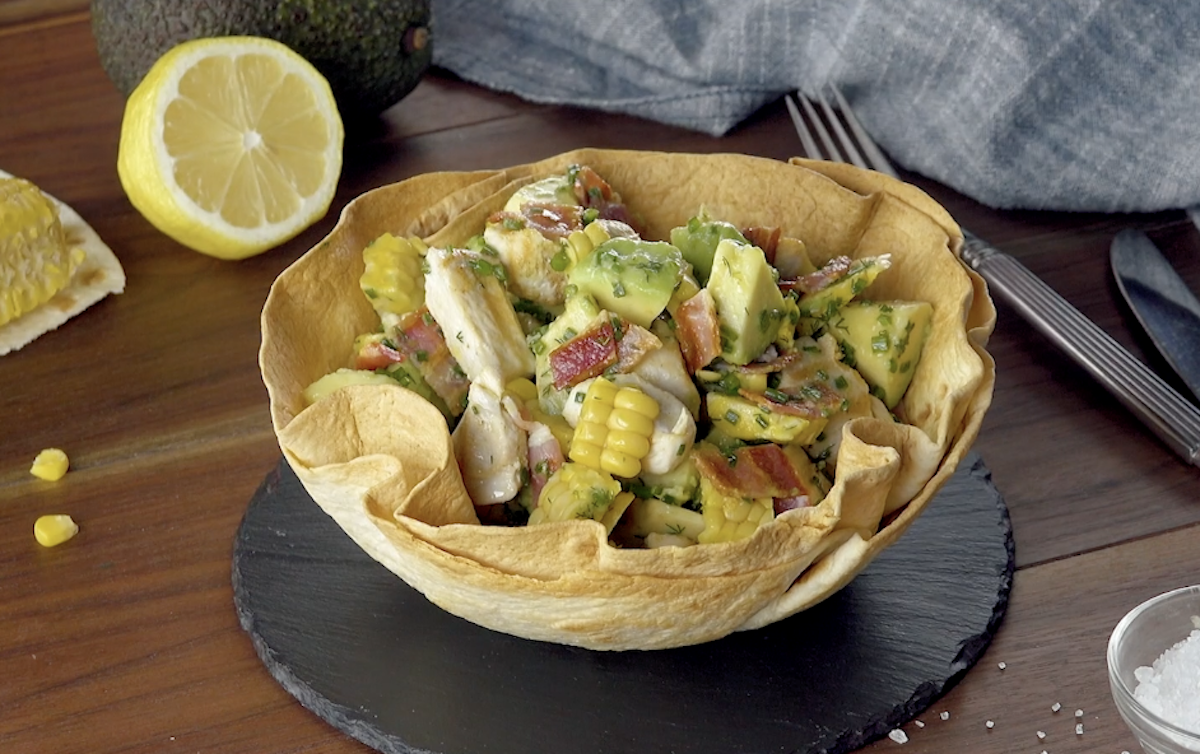 11. La salade estivale au poulet et à l’avocat dans son bol en tortillas