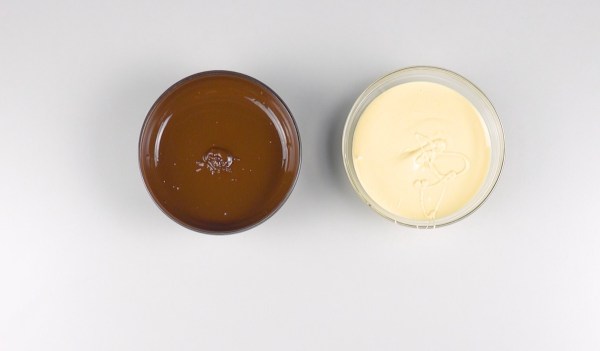 • Faites fondre le chocolat au bain-marie. Nous recommandons d'utiliser au moins deux types de chocolat différents pour chaque coupe afin de décorer les bols.