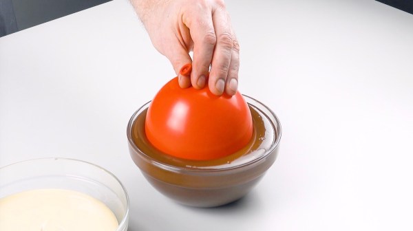 • Collez les bols ensemble en chauffant le dessous d'un bol jusqu'à ce que le chocolat commence à fondre et en plaçant l'autre bol dessus.