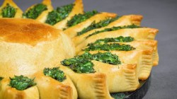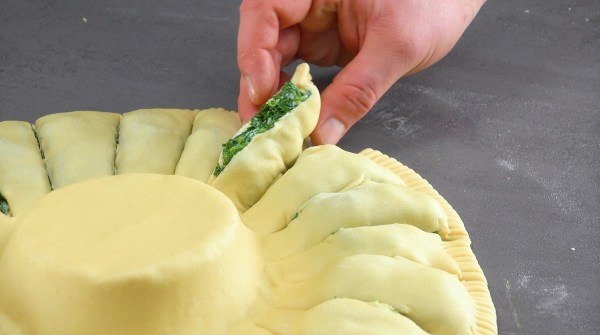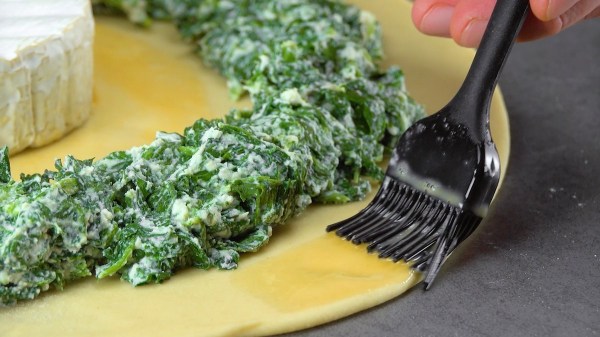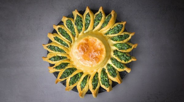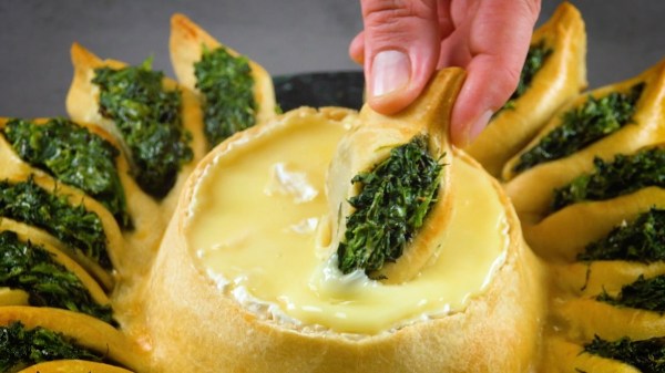 - Retirez ensuite avec précaution la couche de pâte du camembert, détachez un morceau de pâte contenant les épinards et la ricotta, trempez-le profondément dans le fromage crémeux et dégustez-le.