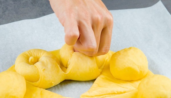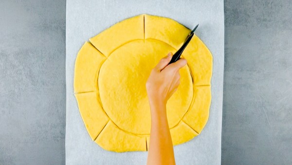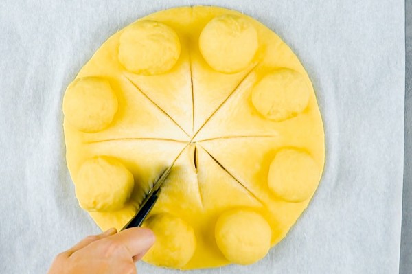 - Coupez la surface intérieure de la pâte de sorte qu'il y ait un triangle devant chaque boule de pâte.
