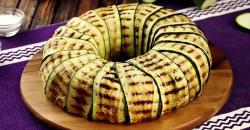 - Préchauffez votre four à 180°C (Thermostat 6 - 350°F). Déposez les lamelles de courgettes dans le fond d’un moule à Savarin avec charnières, en les laissant dépasser par dessus les bords du moule.