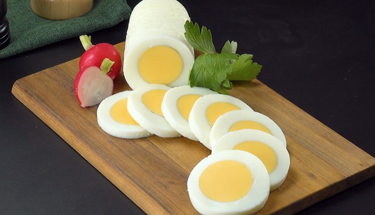 4.3) Retirez le jaune d’œuf cuit du verre et mettez-le dans un verre tube graissé. Remplissez le verre avec le blanc d’œuf battu.