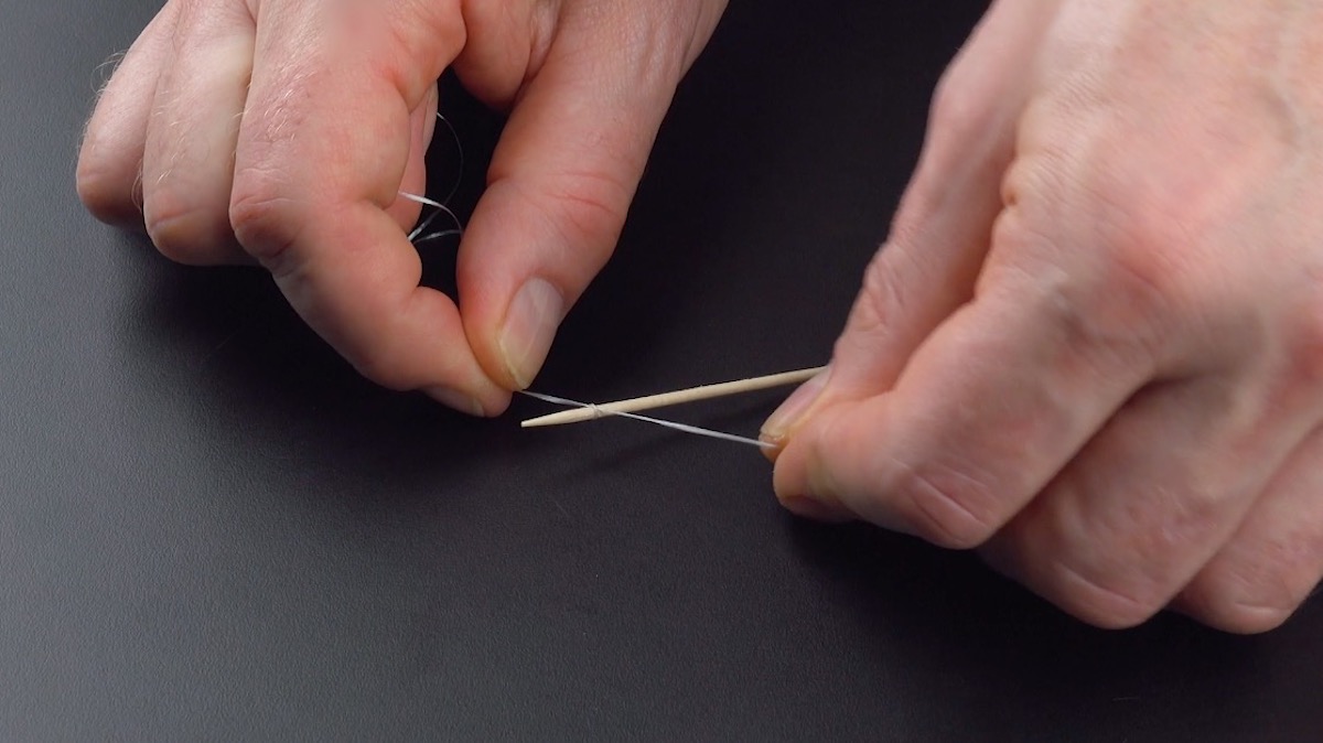 2.1) Faites un nœud avec le fil dentaire sans le serrer. Insérez un cure-dent dans la boucle et resserrez le nœud.
