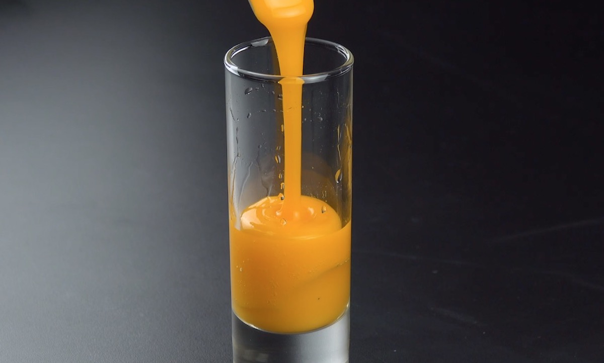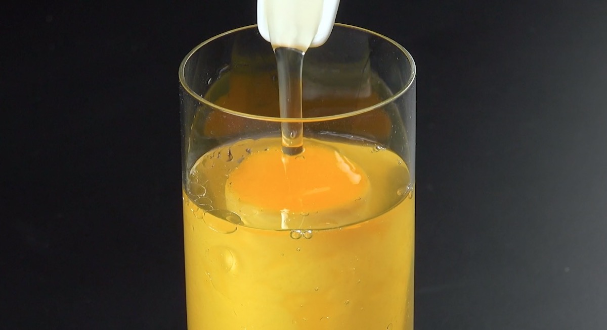 4.1) Tout d’abord, séparez les blancs des jaunes d’œufs. Graissez ensuite un verre à shooter avec de l’huile et ajoutez le jaune d’œuf battu.