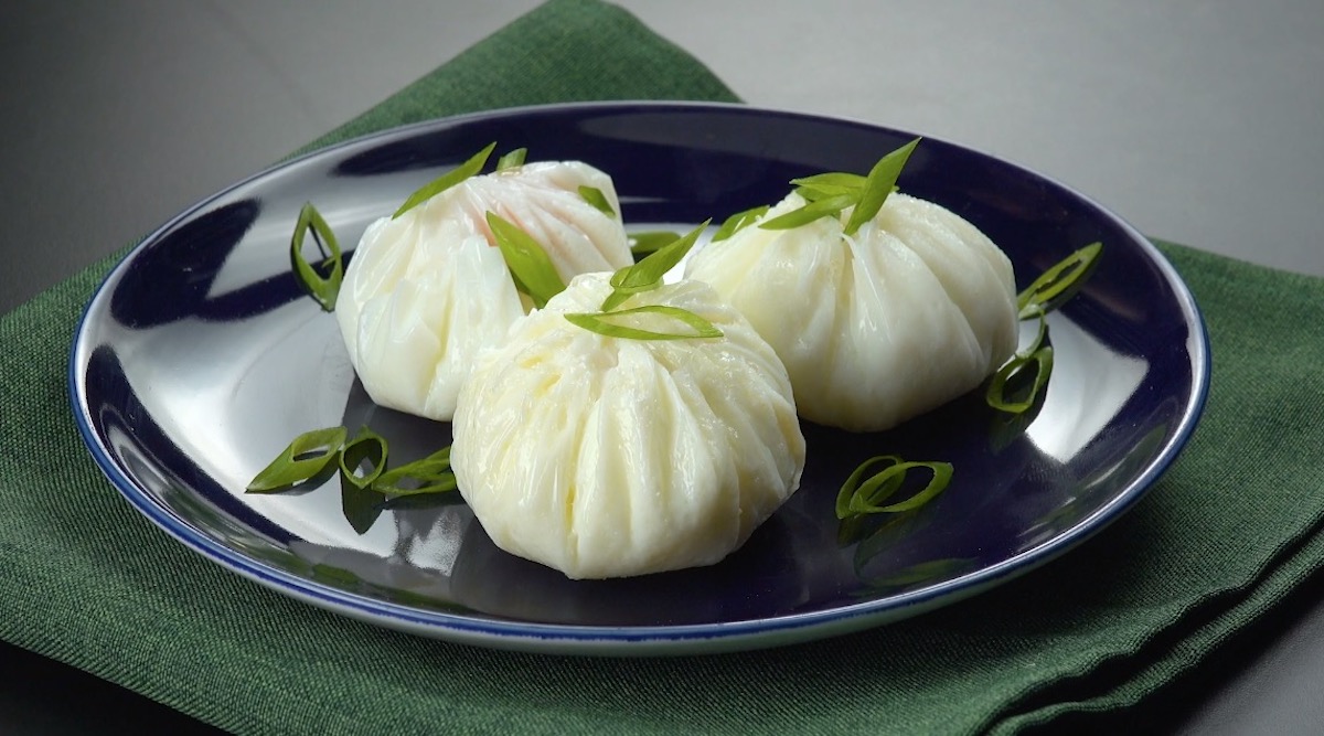 1.2) Mettez les petits sachets d’œufs dans de l’eau chaude pendant 12 à 15 minutes puis mettez-les sous l’eau froide. Retirez le film alimentaire et servez les œufs avec les oignons nouveaux.