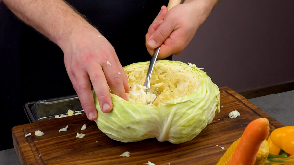 • Coupez d'abord le dessus du chou blanc, puis évidez-le.