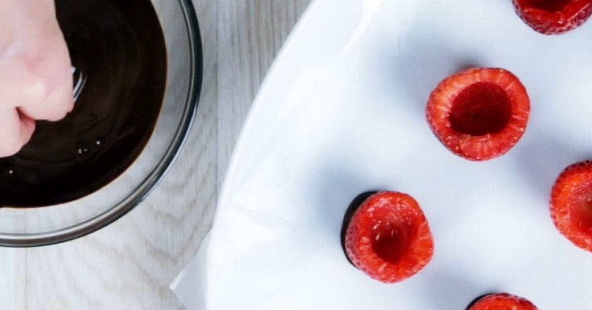 - Remplissez les fraises de votre mixture liquide et que la fête commence !