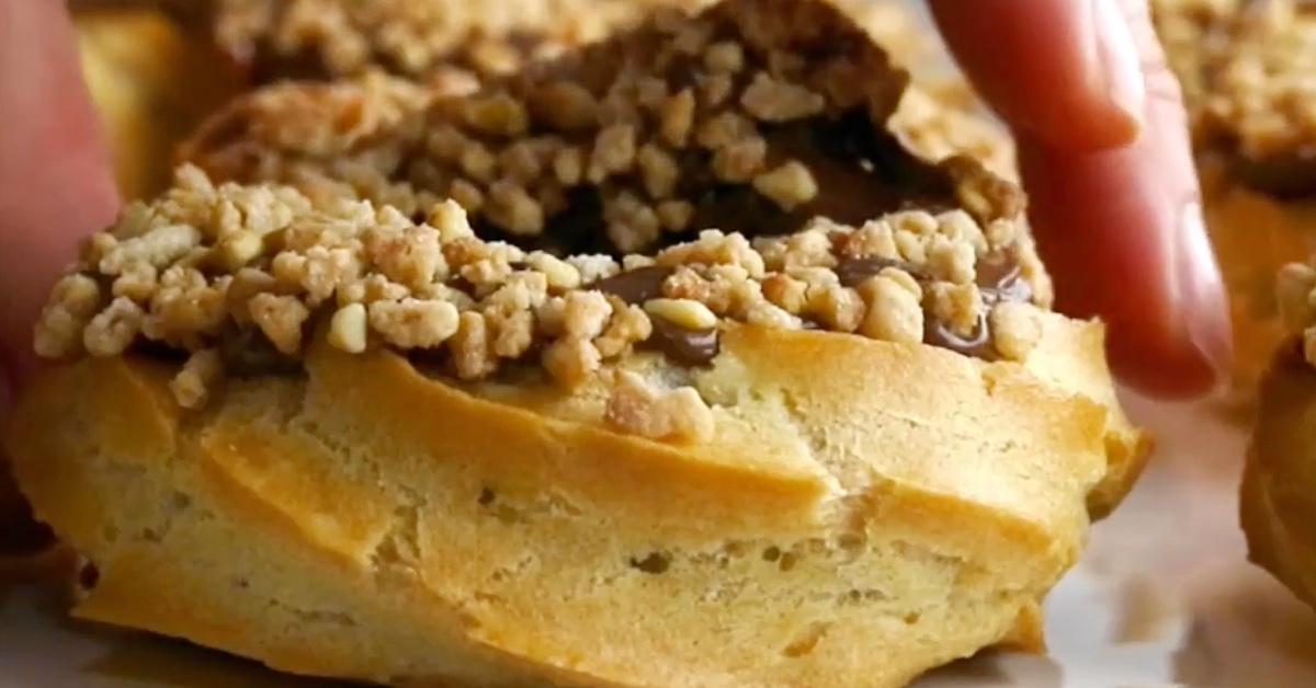 - Tartinez le dessus des donuts avec le reste de votre crème au Nutella et pressez-les enfin dans les noisettes concassées.