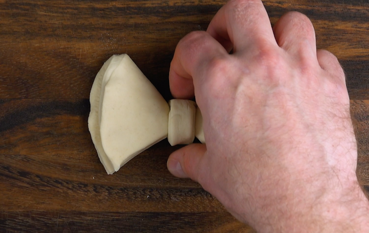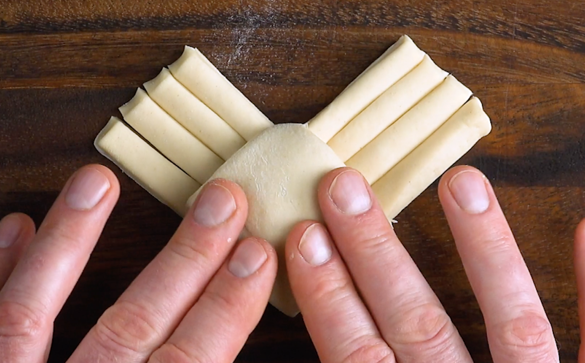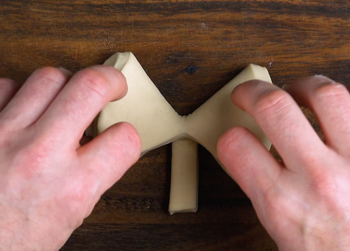 8.3) Pliez la bande de pâte inférieure vers le haut et pressez-la un peu.