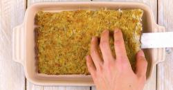 - Après la cuisson, coupez trois bandes d'écrasé de chou-fleur et déposez une première bande dans le fond d'un plat allant au four. Ajoutez deux tranches de jambon par-dessus puis six tranches de fromage. Mettez une autre couche de chou-fleur, deux tranches de jambon, six tranches de fromage et pour finir, déposez la dernière plaque de chou-fleur. Saupoudrez le tout de mozzarella râpée.