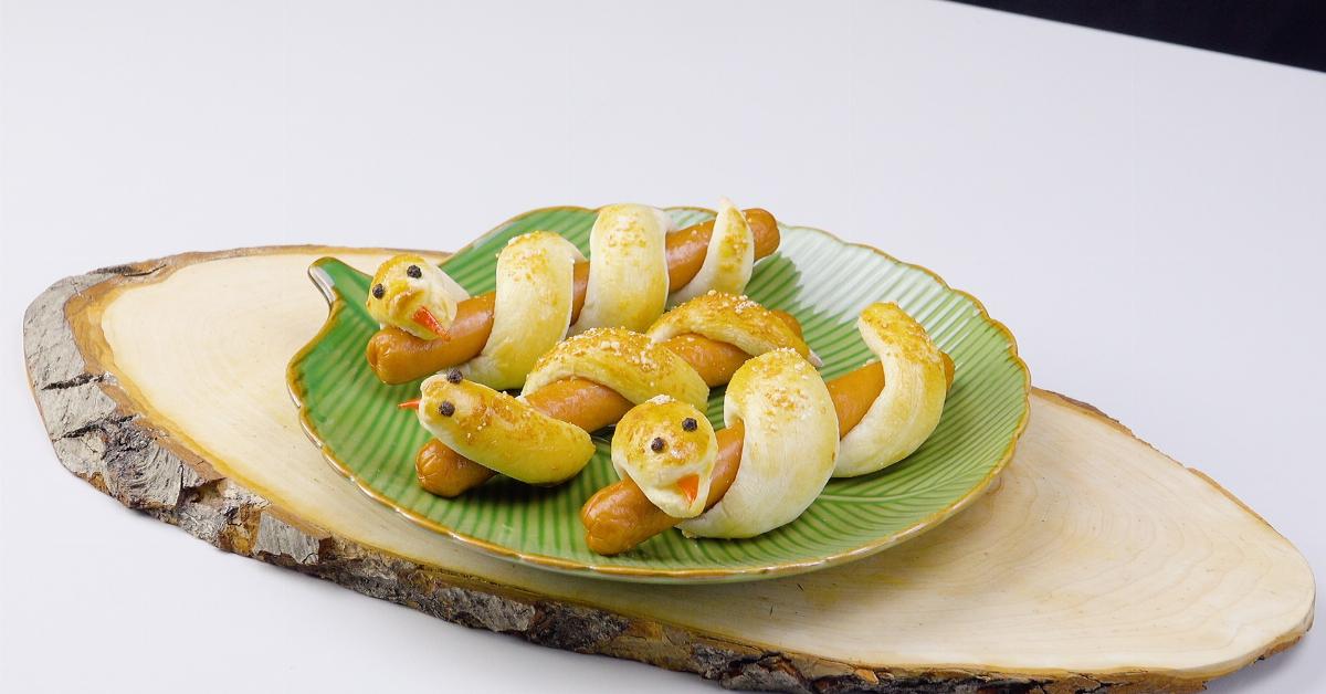 • 1. Roulez d'abord une partie de la pâte en forme de long serpent puis enroulez-la autour d'une saucisse. Battez l'oeuf et enduisez-la pâte avec.