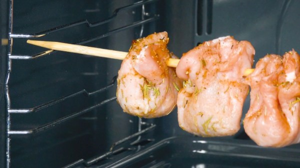 • Sortez la brochette en bois avec les escalopes de porc de la marinade et laissez-les s'égoutter. Placez ensuite la brochette en bois dans le four et faites cuire les escalopes de porc farcies de bruschetta et de mozzarella pendant 12 minutes à 190 °C, en mode convection ; n'oubliez pas de placer une plaque de cuisson sous les escalopes de porc dans le four comme égouttoir.